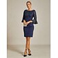 Abito mini con paillettes da donna abito tubino elegante festa floreale maniche 3/4 collo a giro blu navy estate primavera autunno