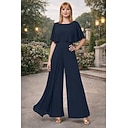 Tute Abito elegante Ospite di matrimonio Fidanzamento Lunghezza intera Maniche corte Collo barca con bretelle per impressionare |