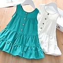 Bambini Ragazze Abito Tinta unica Senza Maniche All'aperto Casuale Arricciato Bottoni Casual Dolce Cotone Midi Abito a trapezio Vestito Canotta Estate Primavera 3-10 Anni Bianco Verde |