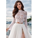 Abiti da sposa boho Separates per matrimoni in spiaggia Top a collo alto con maniche lunghe Top in pizzo Abiti da sposa con appliques vestiti per impressionare Matrimonio autunnale (Solo Top) |