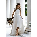 Matrimonio sulla Spiaggia Piccoli Abiti Bianchi Abiti da Matrimonio Due Pezzi Scollo a Barchetta Manica a Cappuccio Asimmetrico Pizzo Completi da Sposa Abiti da Sposa con Colore Solido |