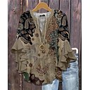 Blusa Retro da Donna Maniche a Ruffle Sovrapposte Vintage Grafica Floreale Bohemia Vintage Quotidiana Manica 3/4 Regolari Top Quotidiani Vacanza Stampa Bianca Blu Marrone Estate Primavera