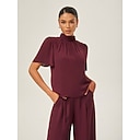 Per donna Femminile Camicia casual Semplice Casuale Manica a Balze Vino Maniche Corte Elegante Vacanza Collo Alto Estate Interstagionale