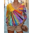 Per donna Blusa Stampato Tinta a nodi Fiore Bohemien Quotidiano Manica Lunga Scollo a V Top Regolari Quotidiano Ferie Blu Rosa Viola Fucsia Albicocca Estate Primavera Autunno