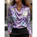 Per donna Camicia Elegant Top in raso A calotta di seta Stampato Drappeggiato Floreale Grafico Elegante Casual Manica Lunga Scollo a Cascata Top Regolari Quotidiano Lavoro Ferie Nero Bianco Viola