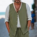 Per uomo Camicia di lino Canotta Gilet Senza Maniche Bottone Estate Tinta unica Semplice Moda Classico Confortevole Streetwear Casuale Sportivo Giallo scuro Nero Verde chiaro Maglietta Top per Uomo |