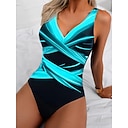 Costume da bagno intero da donna snellente monokini arricciato controllo della pancia vita alta snella elegante vacanza grafico ombre scollatura a V senza maniche |