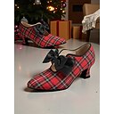décolleté da donna a quadri rossi con fiocco in raso nero - stile vintage anni '20, perfette per feste di Natale, incontri retrò e abbigliamento quotidiano |