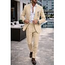 abiti da uomo in lino, abiti estivi da matrimonio in spiaggia, tinta unita, 2 pezzi, vestibilità su misura, un bottone, champagne beige |
