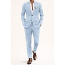 Uomo Smoking Completi in Lino Matrimonio in Spiaggia Azzurro cielo Beige Estate Tuta Dentellato Bavero classico Tinta unita Vestibilità su misura 2 pezzi Monopetto Due Bottoni |