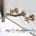 rubinetto miscelatore lavabo a parete, rubinetti per lavabo diffusi ottone vintage 2 maniglie 3 fori lavabo lavabo rubinetto con tubo acqua calda fredda retrò antico |