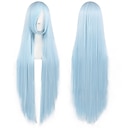 Parrucca azzurra da 100 cm per parrucca da donna cosplay parrucca dritta con frangia parrucca di capelli sintetici costume per anime halloween party |