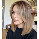 parrucca marrone scuro castano scuro biondo castano ramato con frangia parrucche naturali corte e diritte per le donne parrucche sintetiche lunghe fino alle spalle per il cosplay quotidiano |