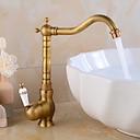 miscelatore lavello da cucina rubinetto tradizionale, rubinetti da cucina rotanti a 360 ° in ottone antico stile retrò monocomando un foro con tubo dell'acqua calda e fredda |