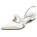 eleganti scarpe eleganti da donna in raso bianco con decorazioni di perle: sandali con tacco basso perfetti per matrimoni e occasioni speciali |