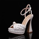 scarpe col tacco alto con plateau e perle da donna - scarpe da sposa di lusso con cinturino alla caviglia e design con tacco spesso |