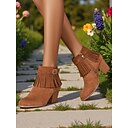 stivaletti da donna in finta pelle scamosciata con frange e tacchi a blocco – stile western per feste in giardino, sagre in fattoria e abbigliamento casual autunnale |