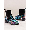 stivaletti da donna con ricami floreali e tacco a blocco trapuntato, stile vintage, calzature alla moda per feste e casual |