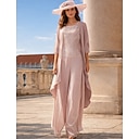 Tuta Completo Pantalone Tre Pezzi Lunghezza al pavimento Abito da cerimonia per signora Senza Maniche Scollo a Barca Elegante Taglie Forti Con Stola Ospite di nozze Chiffon Abiti con Giacca con Tinta |