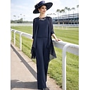 Tuta Completo Pantalone Lunghezza al pavimento Abito da cerimonia per signora Manica 3/4 Collo gioiello Elegante Formale Ospite di nozze Chiffon Pizzo con Perline Applicazioni |