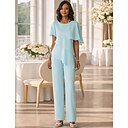 Due Pezzi Tuta Completo Pantalone Lunghezza al pavimento Abito da cerimonia per signora Manica Corta Collo gioiello Elegante Taglie Forti Ospite di nozze Chiffon con Balze a cascata |