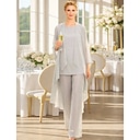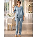 Tre Pezzi Completo Pantalone Lunghezza al pavimento Perline ricamate Abito Formale Abito da madre della sposa Abito da cerimonia per signora Manica Lunga Girocollo Collo gioiello Elegante Formale |