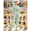 Tuta Completo Pantalone Tre Pezzi Lunghezza al pavimento Abito da cerimonia per signora Manica 3/4 Scollo Tondo Elegante Formale Ospite di nozze Chiffon Pizzo Con Paillettes con Pizzo Paillettes |