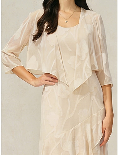 Linea ad A Lunghezza al pavimento Perline ricamate Abito Formale Abito da madre della sposa Abito da Sera Da principessa Abito formale Elegante Setoso Manica 3/4 Girocollo Matrimonio Formale Tasca