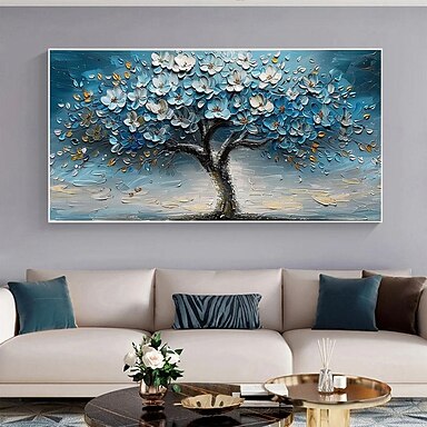 dipinto a mano grande originale albero in fiore dipinto ad olio su tela personalizzato wall artabstract texture blu fiore arte decorazione della parete soggiorno decorazione della parete senza cornice