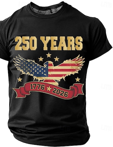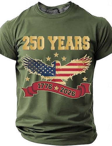 4 luglio 2026 250° Giorno della Memoria T-Shirt a Maniche Corte Patriottica Patriot in Stampa 3D per Uomini Veterano Casual Quotidiana
