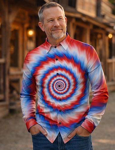Per uomo 3D Print Camicia con bottoni Camicie stampate Manica lunga Sottoculturale Da mare Feste Strada Primavera estate Collo ripiegabile Stampa Bottone giù Rosso Blu Viola Verde