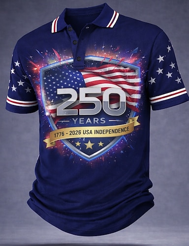4 luglio 2026 250° Per uomo Bandiera Americana Polo Manica Corta Magliette polo Camicie con Colletto Casual Athleisure Bottoni Primavera & Estate Blu Bianco Rosso