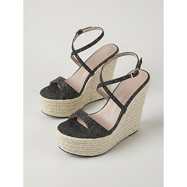 Sandali espadrillas con zeppa neri da donna - ideali per le serate in località balneare &eventi notturni