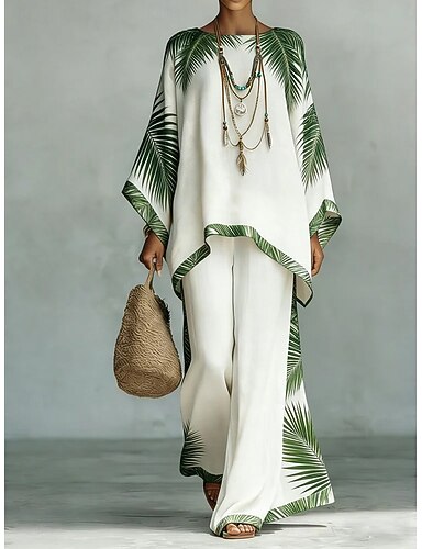 Per donna Camicia Set di biancheria in cotone Set di Pantaloni Manica Lunga Manica a Campana Girocollo Floreale Grafico Stampato Vacanza Moda Streetwear Casuale Quotidiano All'aperto Viola Verde