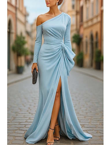 Tubino Colonna Lunghezza al pavimento Abito da invitata a nozze Abito Formale Abito da sera Abito da cerimonia per signora Mezza Manica Senza Spalle Elegante Ospite di nozze Festa di fidanzamento