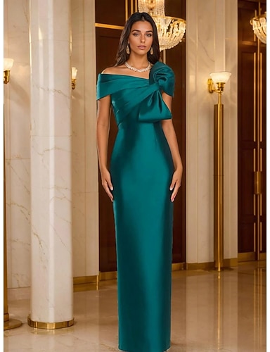 Tubino Colonna Lunghezza al pavimento Abiti da Ballo Abito da Sera Da principessa Abito formale Elegante Manica Corta Monospalla Matrimonio Formale Raso con Fiocco/Fiocchi
