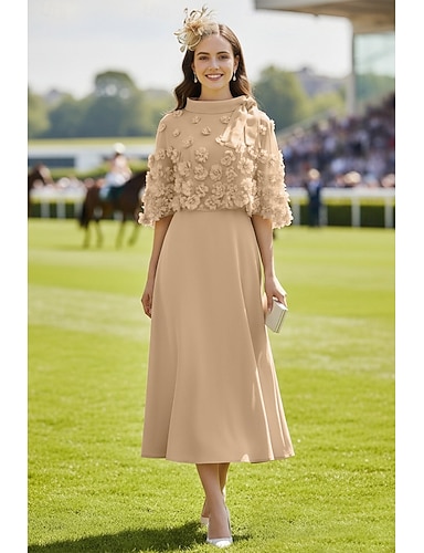 Tubino Colonna Lunghezza Tè Vestito da Festa Abito da Cocktail Abito da invitata a nozze Abito da cerimonia per signora Manica 3/4 Senza Spalle Elegante Vintage Semplice Formale Ospite di nozze Crêpe