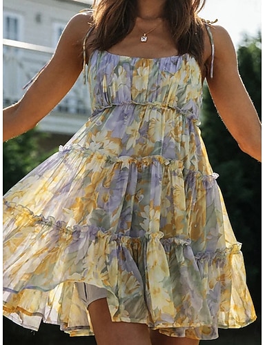 Abito mini Boho da donna abito slip vacanza festa casual uscite da spiaggia vestibilità standard grafica floreale senza maniche scollo a V spalline sottili giallo rosso blu viola estate primavera
