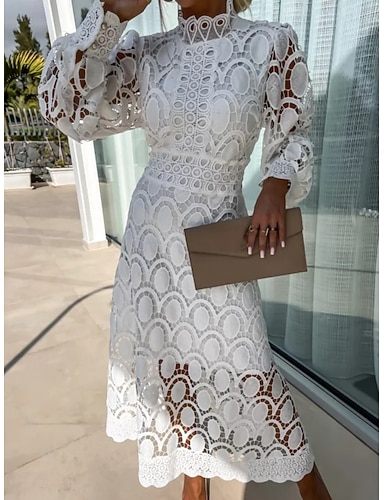 Linea ad A Lunghezza Tè Abiti da Cocktail Abiti da festa Elegante Senza Maniche Senza Spalle Festa in giardino Matrimonio Pizzo con Applicazioni
