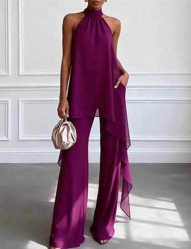 Per donna Chiffon Senza Maniche All'americana Tinta unica Elegante Quotidiano Vacanza Feste Viola Primavera & Estate Vestibilità regolare