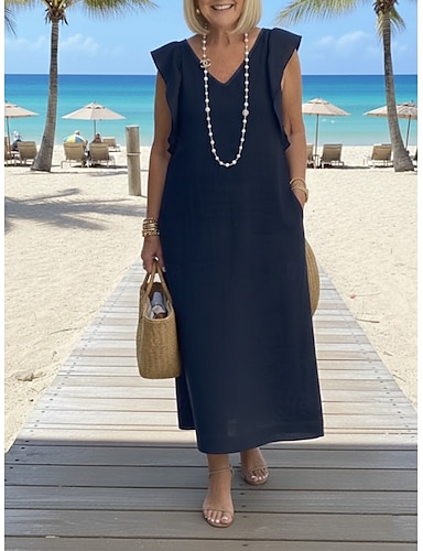 Matrimonio in spiaggia Abiti da cocktail a linea ad A Abito elegante Ospiti di matrimoni Abbigliamento per feste Lunghezza alla caviglia Senza maniche Collo a V Pizzo con volant Applicazioni Abiti