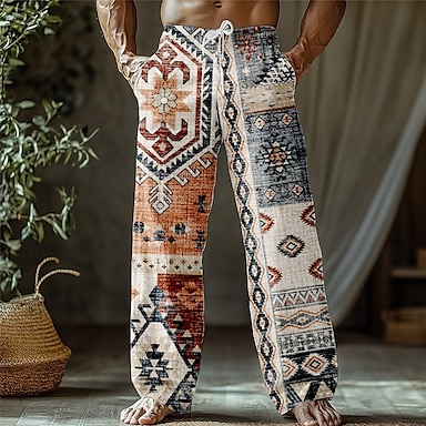 Per uomo Azteco Cultura indiana Fiori Pantaloni Pantaloni Larghi Pantaloni casual Misura del girovita medio Stile Etnico Stile Boho All'aperto Vacanza Ferie Coulisse Tasche Laterali Elastico in vita