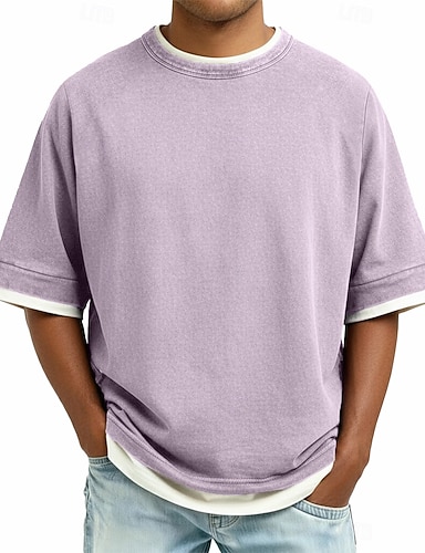 Per uomo Maglietta Waffle Maglietta Manica Corta Girocollo Estate Primavera Tutte le stagioni Tinta unica Moda Designer Casual Blocco di colore Casuale Quotidiano All'aperto Blu chiaro Grigio Viola