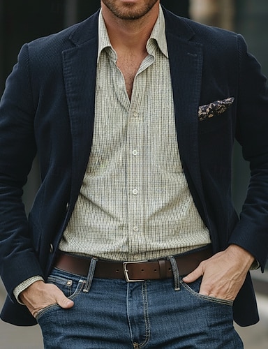 Per uomo Giacca blazer Giacca Sportiva Colletto ad incastro Moda Leggero A righe Blazer Blu marino Vestibilità standard