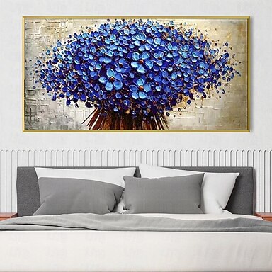 pittura a olio astratta di arte floreale fiore dipinto a mano pittura a olio di fiori blu arte per soggiorno camera da letto opere d'arte pittura a olio di fiori blu
