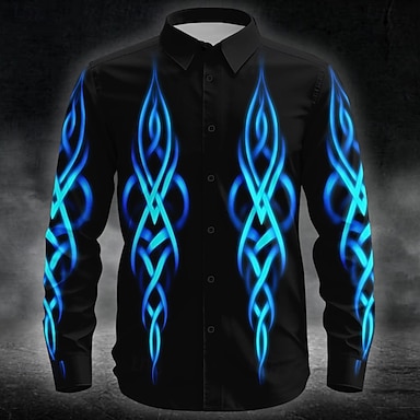 Camicia da uomo con costumi tribali Neon Glow Camicia button up a maniche lunghe Stile gotico punk scuro All'aperto Vacanza Estate Primavera Colletto in stampa 3D Camicie Blu Viola Verde