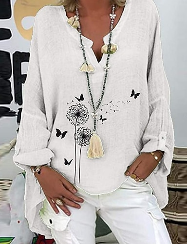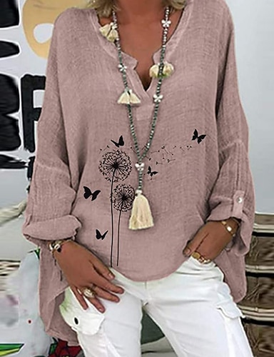 Per donna Camicie di cotone e lino Finto cotone e lino Stampato Margherita Essenziale Casual Manica Lunga Colletto a Camicia Top Regolari Quotidiano Rosa Blu marino Viola Verde Estate Autunno