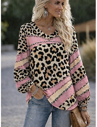 Per donna Camicia Camicia casual Top estivi Stampato Grafico Leopardo Elegante Bohemien Vacanza Manica Lunga Scollo a V Top Regolari Quotidiano All'aperto Abbigliamento casual alla moda Rosa Marrone