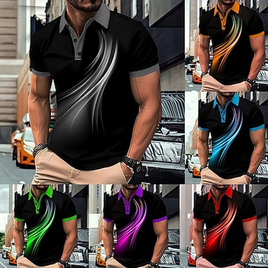 Per uomo Geometrico Linea Polo Manica Corta Magliette polo Camicie con Colletto Casual Scuola All'aperto Abbigliamento quotidiano Abbigliamento da casa Stampa 3D Estate Nero Viola Verde