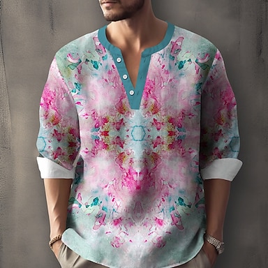 Per uomo Sfumatura Stampa Floreale Fiori Camicia Maglia Henley Tunica Manica Lunga Etnico Boho All'aperto Vacanza Quotidiano Estate Primavera Scollo a V Cardigan con Bottoni Stampa 3D Camicia tipo